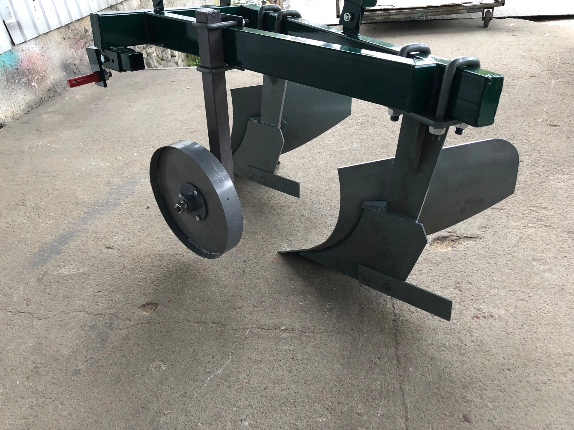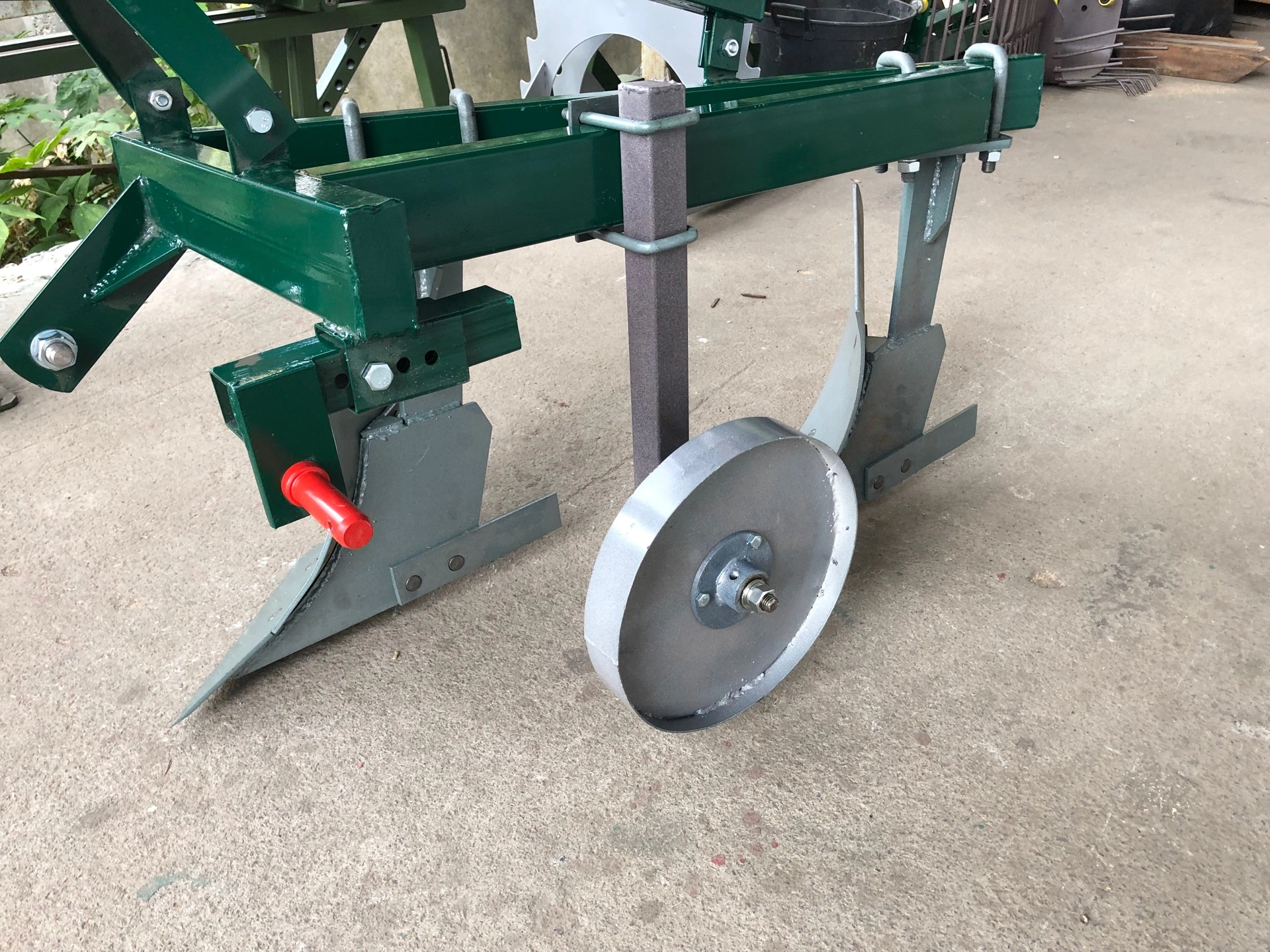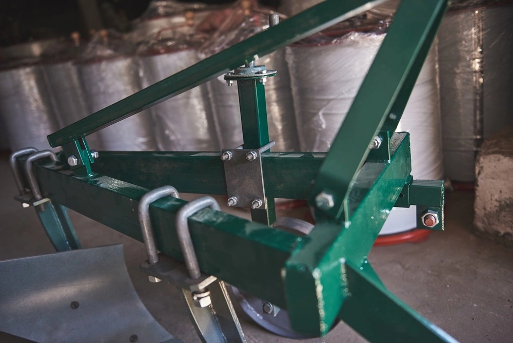 складається з ручки регулювання упорного колеса , кріплення,регульованого кріплення,опорного колеса,зрізуючої планки ,відвалу,лемішу