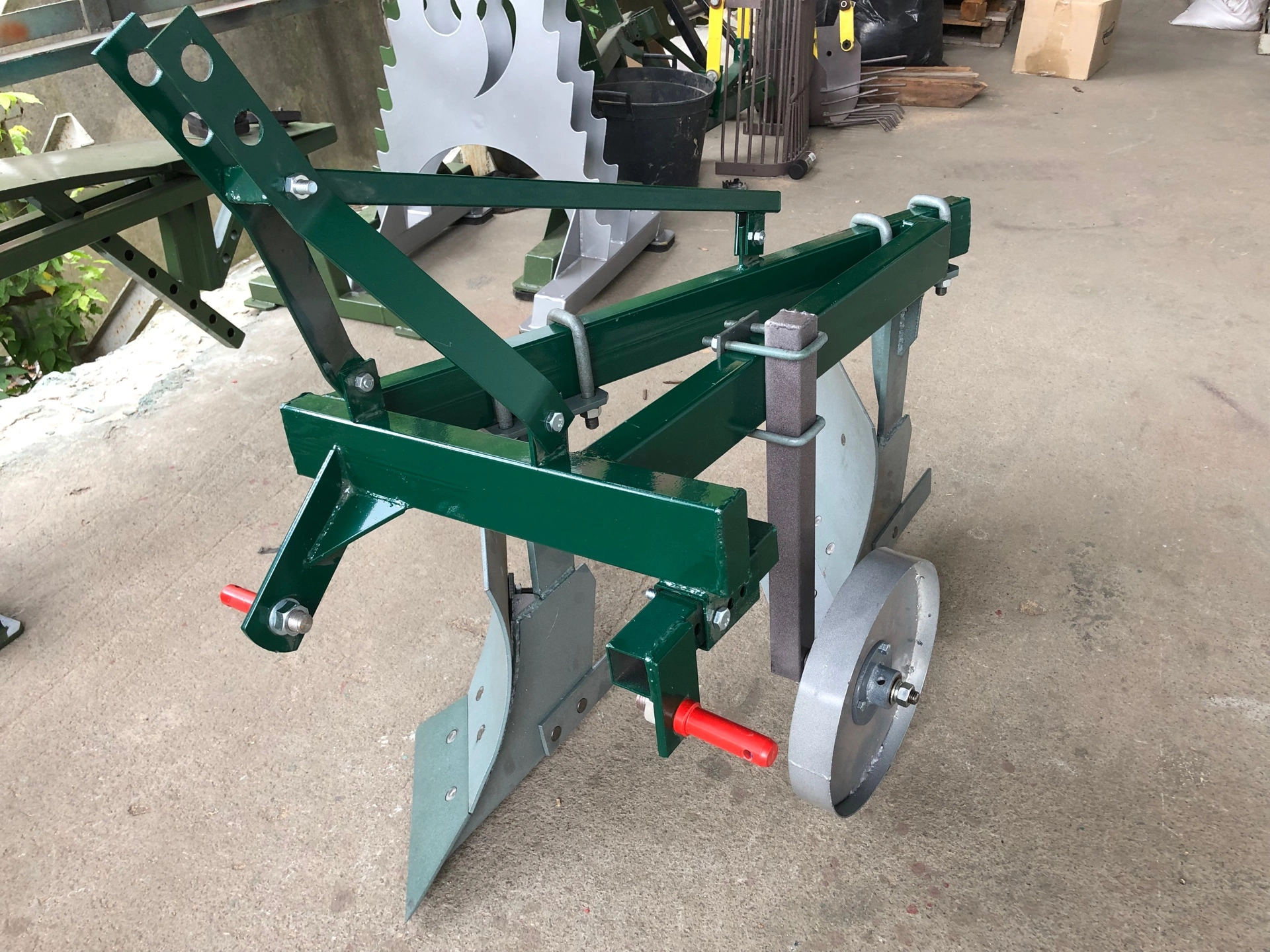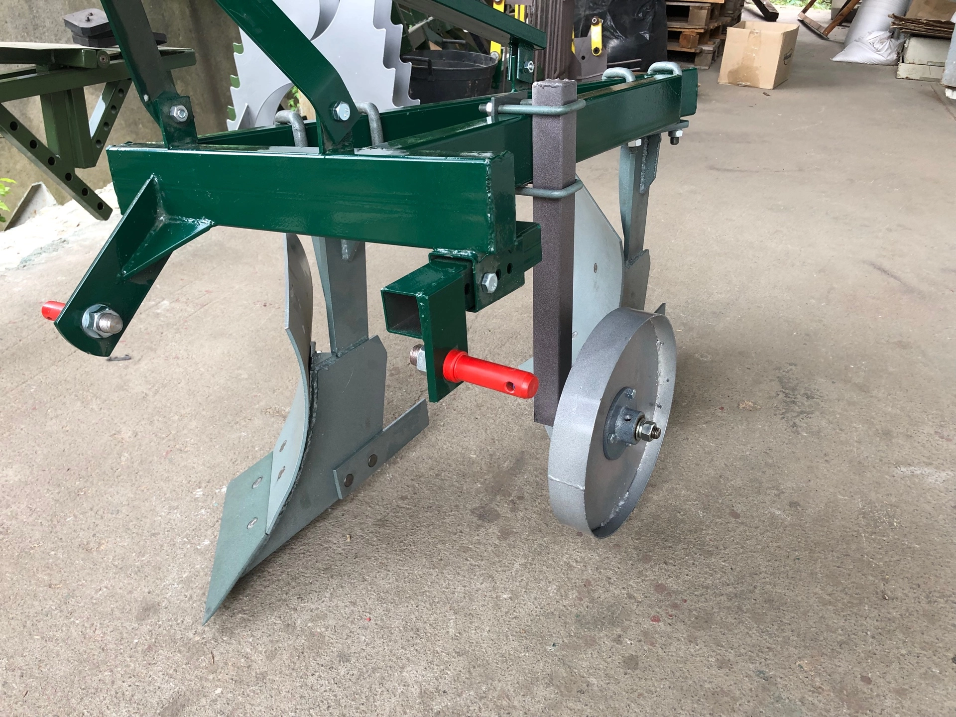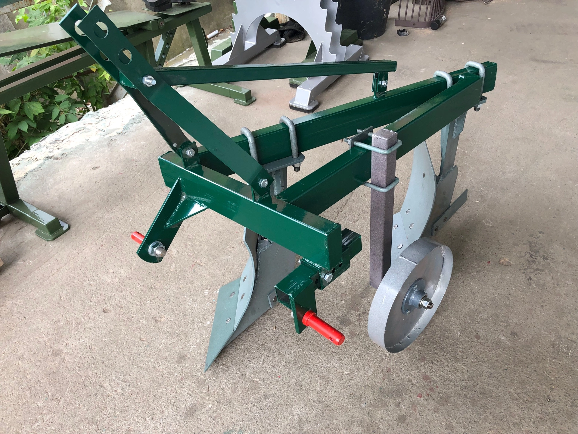 складається з ручки регулювання упорного колеса , кріплення,регульованого кріплення,опорного колеса,зрізуючої планки ,відвалу,лемішу